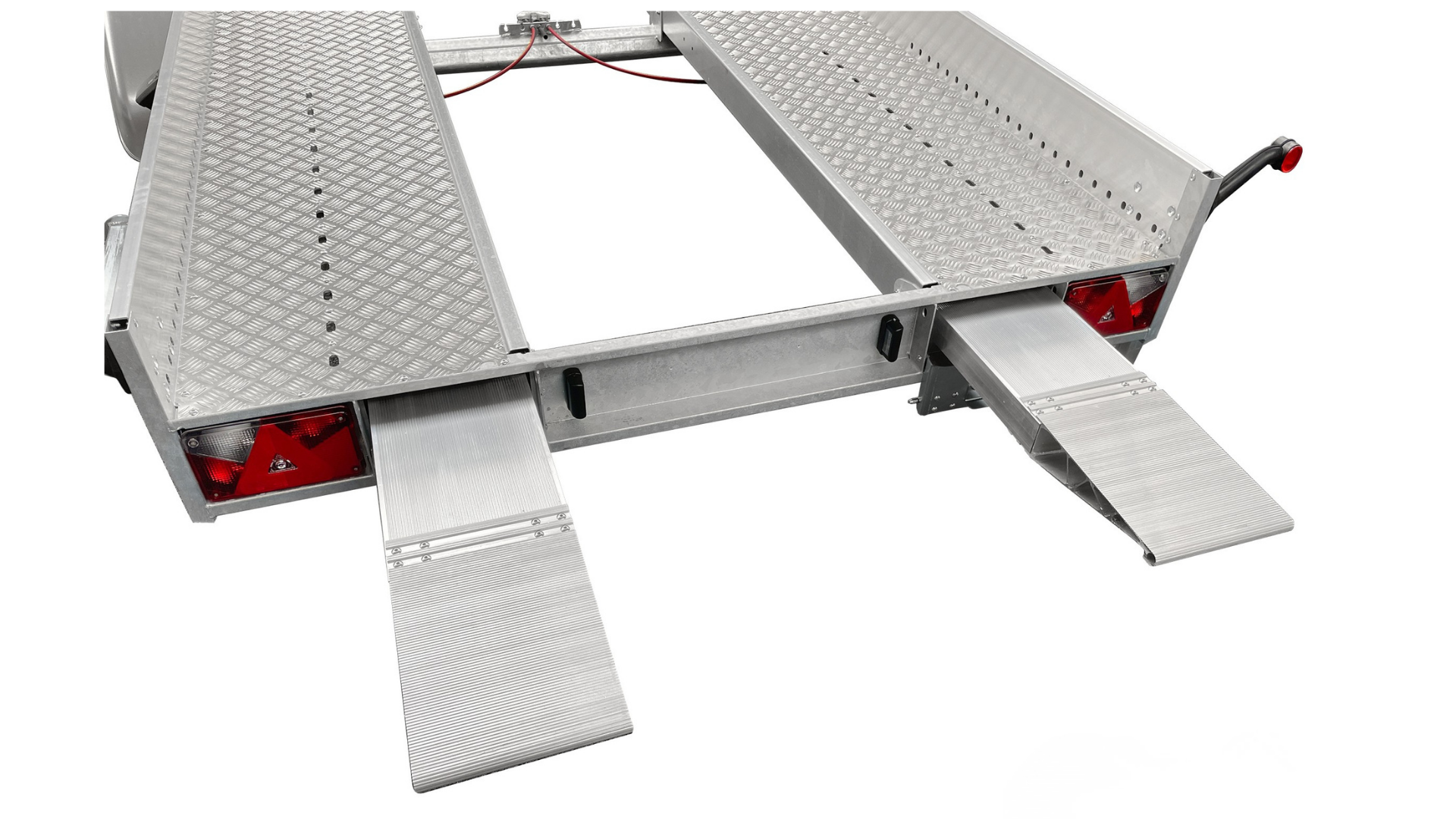 Der AMT-ECO wird mit Aluminiumrampen geliefert , die in integrierten Halterungen unter den Schienen verstaut werden können und somit immer sauber, sicher und einsatzbereit sind.
