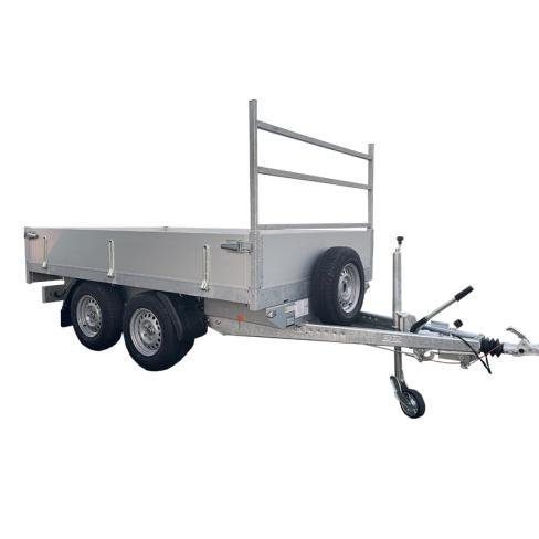 Dank seiner robusten Achse und des zuverlässigen Befestigungssystems bietet er zudem eine hervorragende Stabilität. Selbst auf unebenem Gelände bleibt er stabil und sicher. Die verstärkten Seitenwände des Kippaufbaus verhindern Verformungen beim Transport schwerer Lasten.