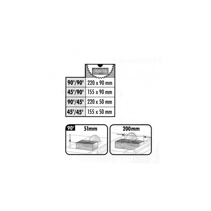 Maximale Schnittkapazität bei 45°/45°: 155 x 50 mm