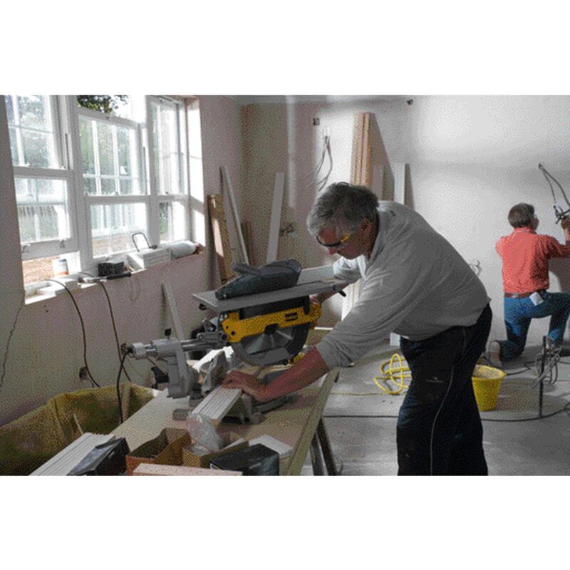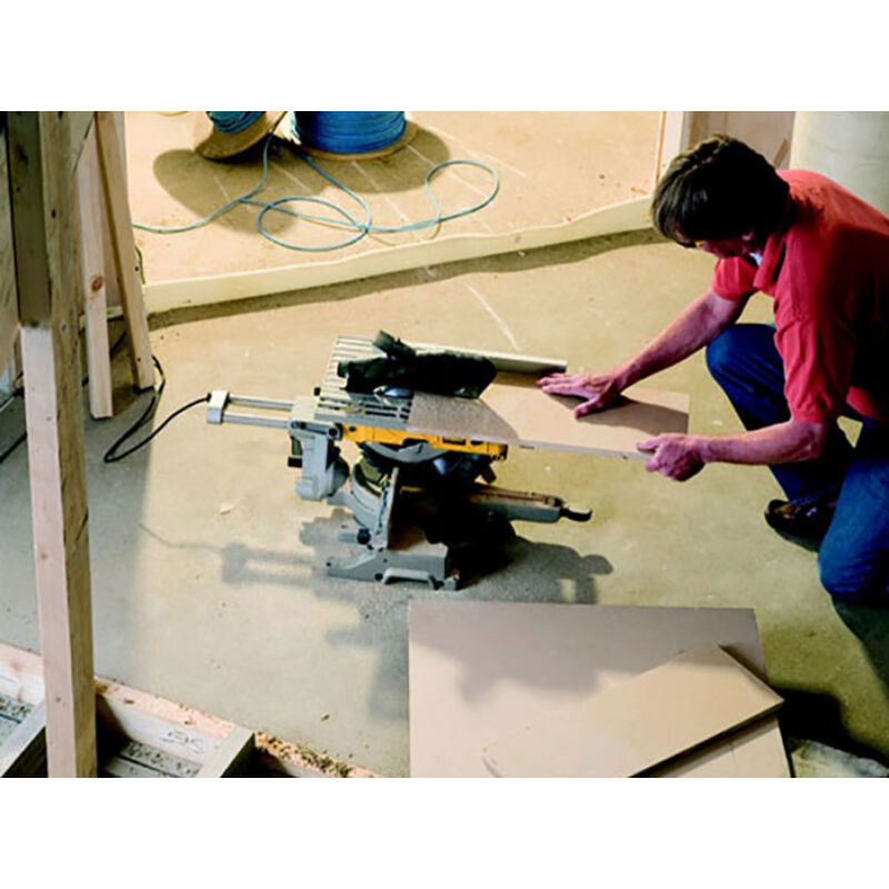 Die Radialarm-Kapp- und Gehrungssäge DeWalt D27111 ist ein leistungsstarkes und vielseitiges Werkzeug für Gehrungsschnitte und Längsschnitte. Mit ihrem 1500-Watt-Induktionsmotor bietet sie hervorragende Leistung und ist dank ihres geringen Gewichts von 26,5 kg dennoch leicht zu transportieren. Ihre robuste Konstruktion mit einem Sockel und Tisch aus Aluminiumguss gewährleistet präzise und hochwertige Schnitte.
