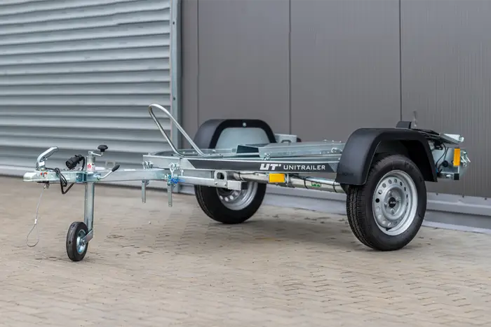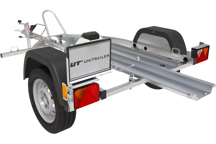 Kleiner Motorradanhänger für den Transport eines Motorrads. Unser UNITRAILER MOTO 1 ist ein äußerst praktisches Modell, ideal für den Motorradtransport. Wir haben einen Anhänger entwickelt, mit dem Sie Ihr Motorrad einfach verladen und transportieren können.